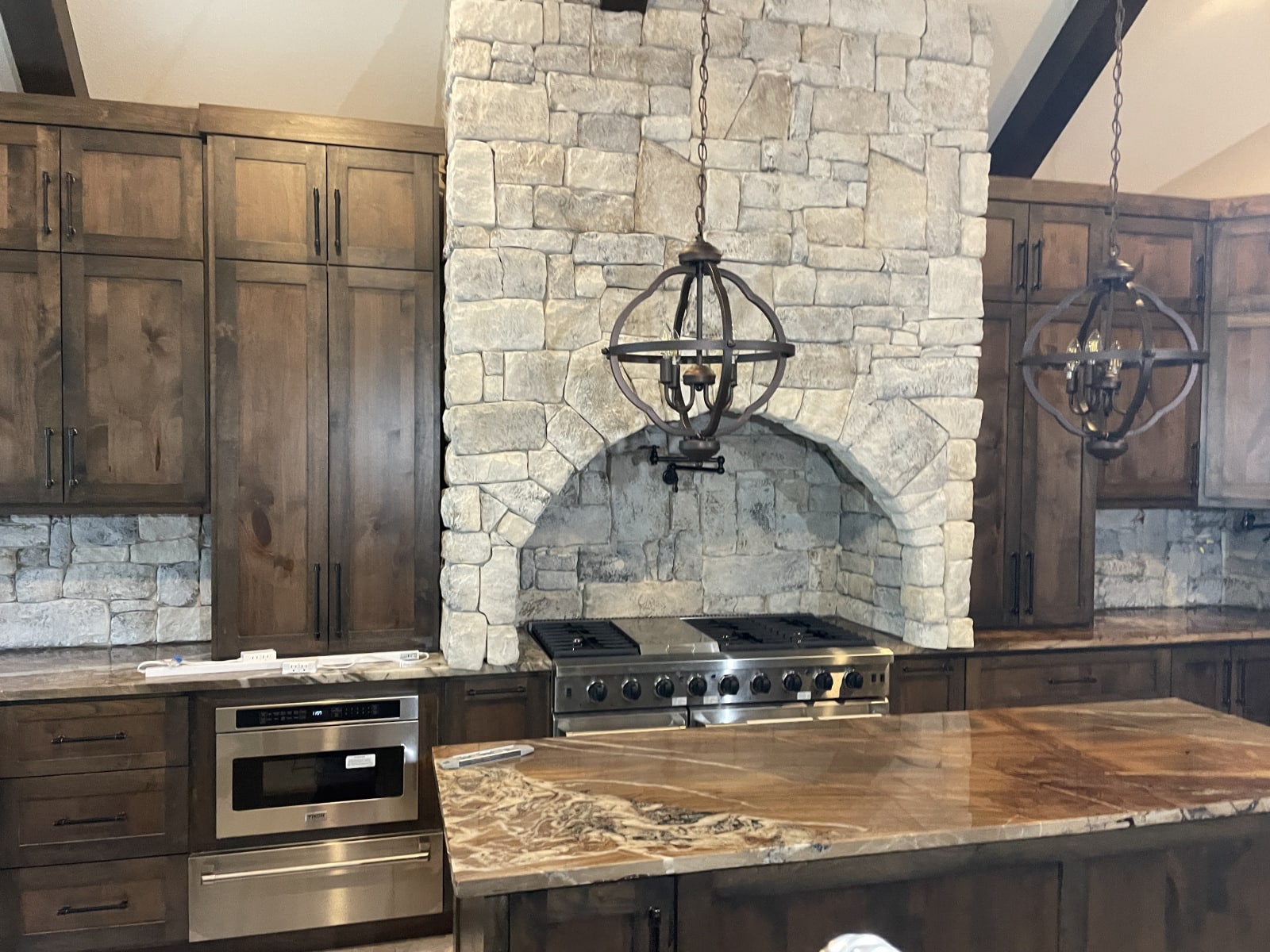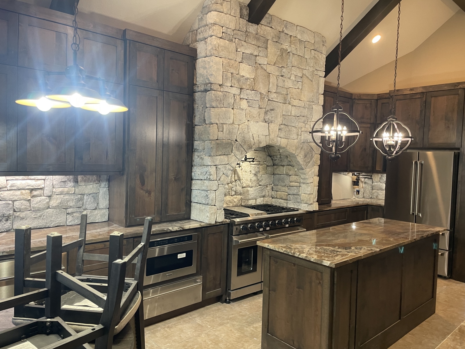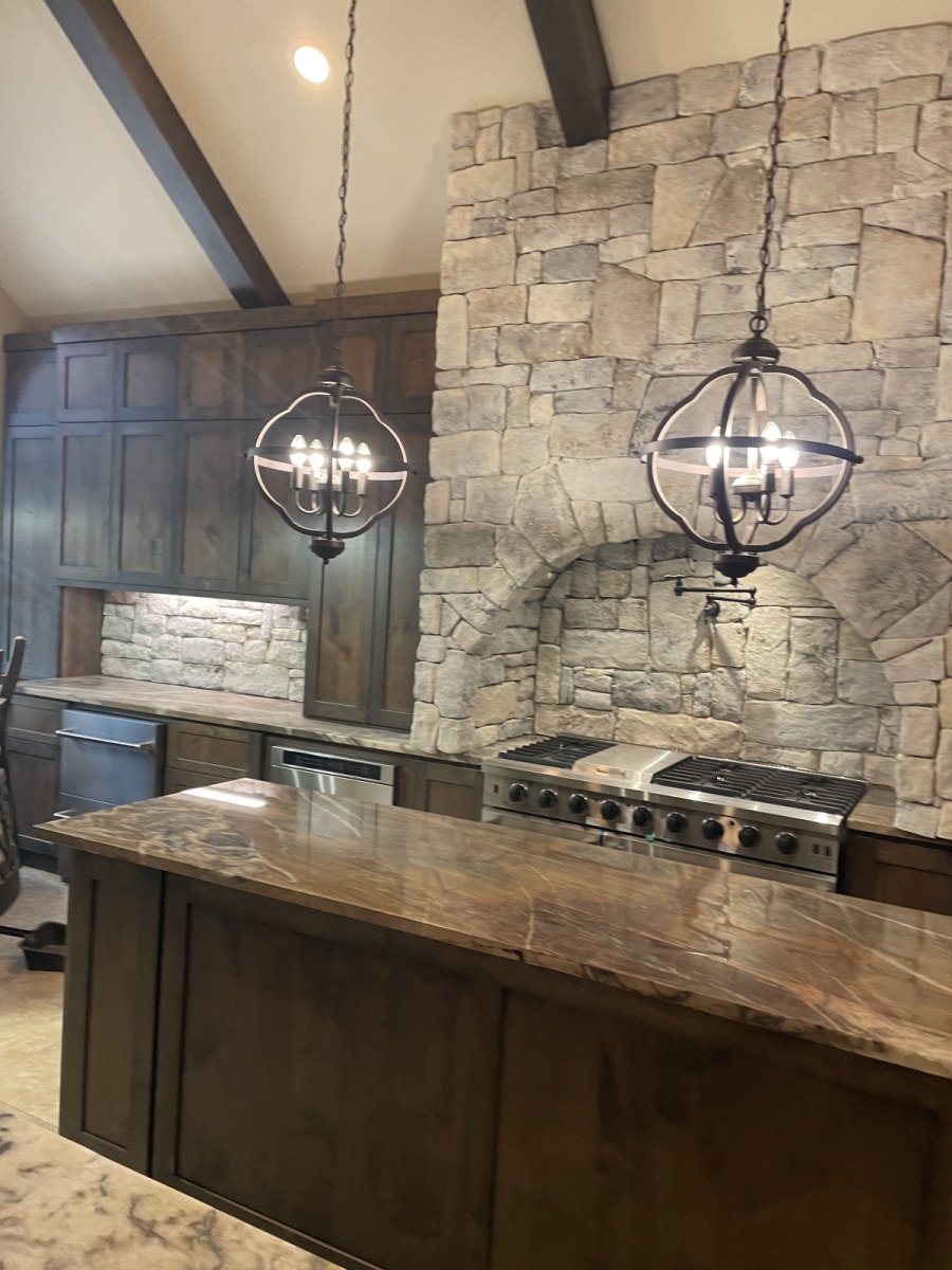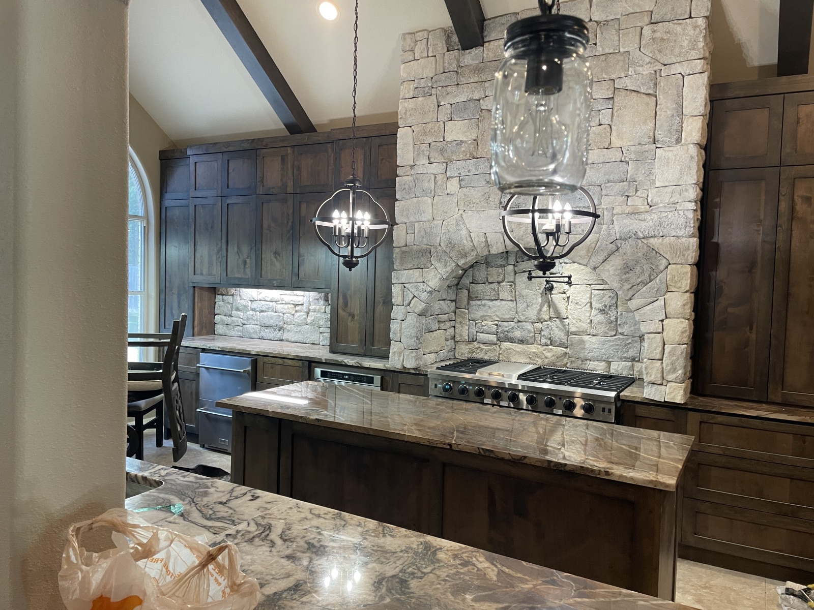 Scott wanted Kristy’s kitchen to feel special in every way, so we installed stunning pendant lights above the island to enhance the warm, welcoming ambiance.