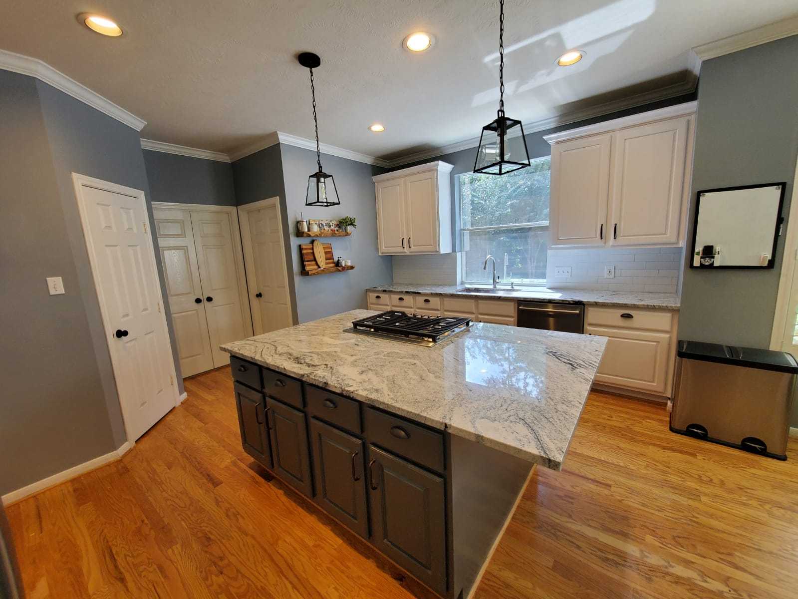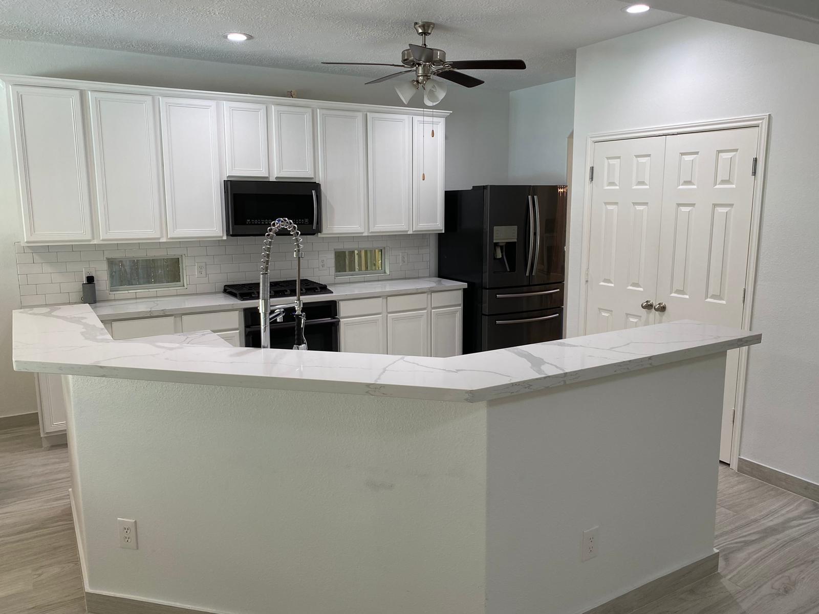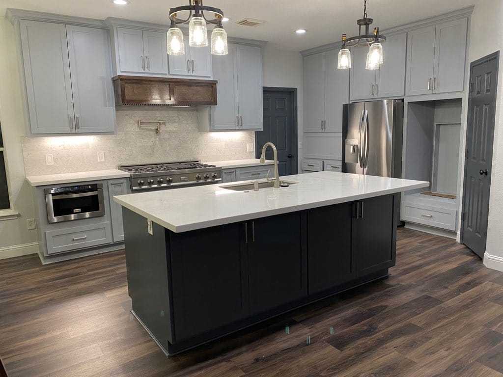 A kitchen remodel can breathe new life into a home, and when two neighbors on the same street in The Woodlandsdecide to revamp their kitchens simultaneously, it creates a unique and exciting project. At Premium Residential Remodeling, we recently had the pleasure of updating two neighboring kitchens, each with its own style and needs. The first kitchen received new quartz countertops, cabinets, a fresh backsplash, and a coat of paint. The second kitchen saw a complete reconfiguration, additional cabinetry painted in blue, new vinyl flooring, new light fixtures, fresh paint, and new quartz countertops and backsplash. This dual renovation was a fun and rewarding experience, bringing together friends and neighbors in a shared journey of transformation in The Woodlands.